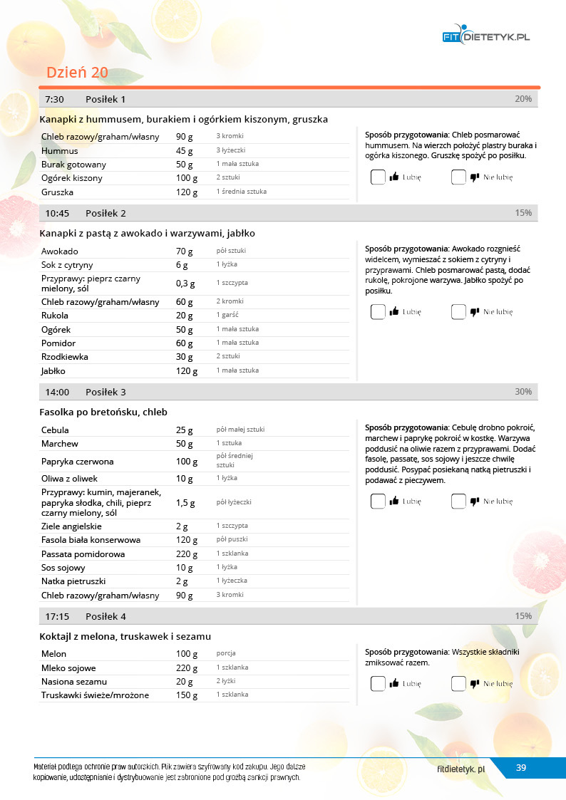 Obok szczegółowego planu dietetycznego otrzymasz również praktyczny poradnik korzystania z opracowanego planu dietetycznego.