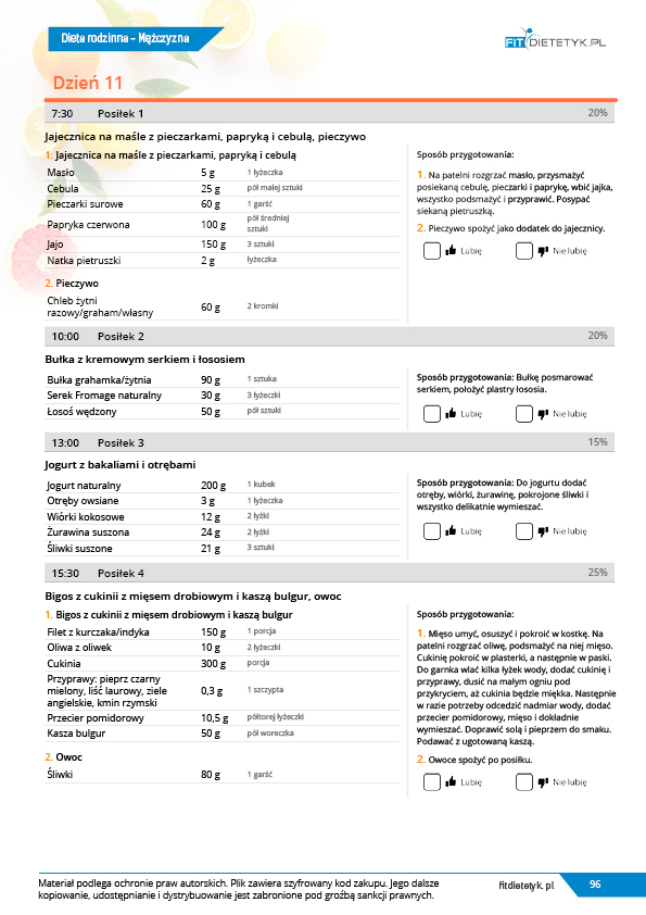 w formie precyzyjnych jadłospisów wielodniowych (na każdy dzień miesiąca jest opracowany osobny jadłospis). Tutaj nie musisz zastanawiać się co zjeść każdego dnia, gdyż będziesz mieć dokładnie wszystko rozplanowane.