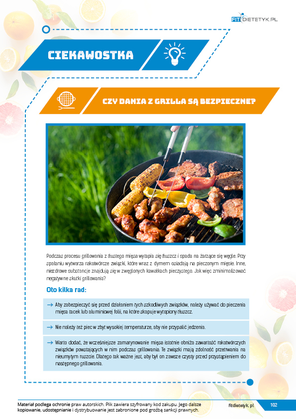 Dodatkowo do opracowanego planu dietetycznego otrzymasz atrakcyjnie przygotowane ciekawostki i wiadomości żywieniowe, które mam nadzieję pozwolą Ci zrozumieć wiele spraw związanych z nurtującym Cię problemem, a także przyczynią się do zwiększenia ogólnej wiedzy żywieniowej.