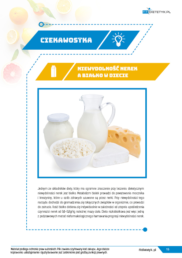 Kompleksowy program dietetyczny przygotowany przez zespół dietetyków klinicznych dla osób z przewlekłą chorobą nerek, Celem opracowanego programu dietetycznego jest ograniczenie w diecie składników pokarmowych obciążających pracę nerek i w konsekwencji prowadzących do powstania toksycznych produktów przemiany materii. W diecie zwrócono szczególną uwagę na kontrolę zawartości białka, sodu, fosforu oraz potasu. Dieta została opracowana na okres 14 dni, ale może być kontynuowana w dłuższej perspektywie czasu.46