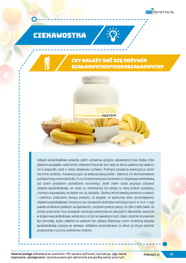 Dodatkowo do opracowanego planu dietetycznego otrzymasz atrakcyjnie przygotowane ciekawostki i wiadomości żywieniowe, które mam nadzieję pozwolą Ci zrozumieć wiele spraw związanych z nurtującym Cię problemem, a także przyczynią się do zwiększenia ogólnej wiedzy żywieniowej.