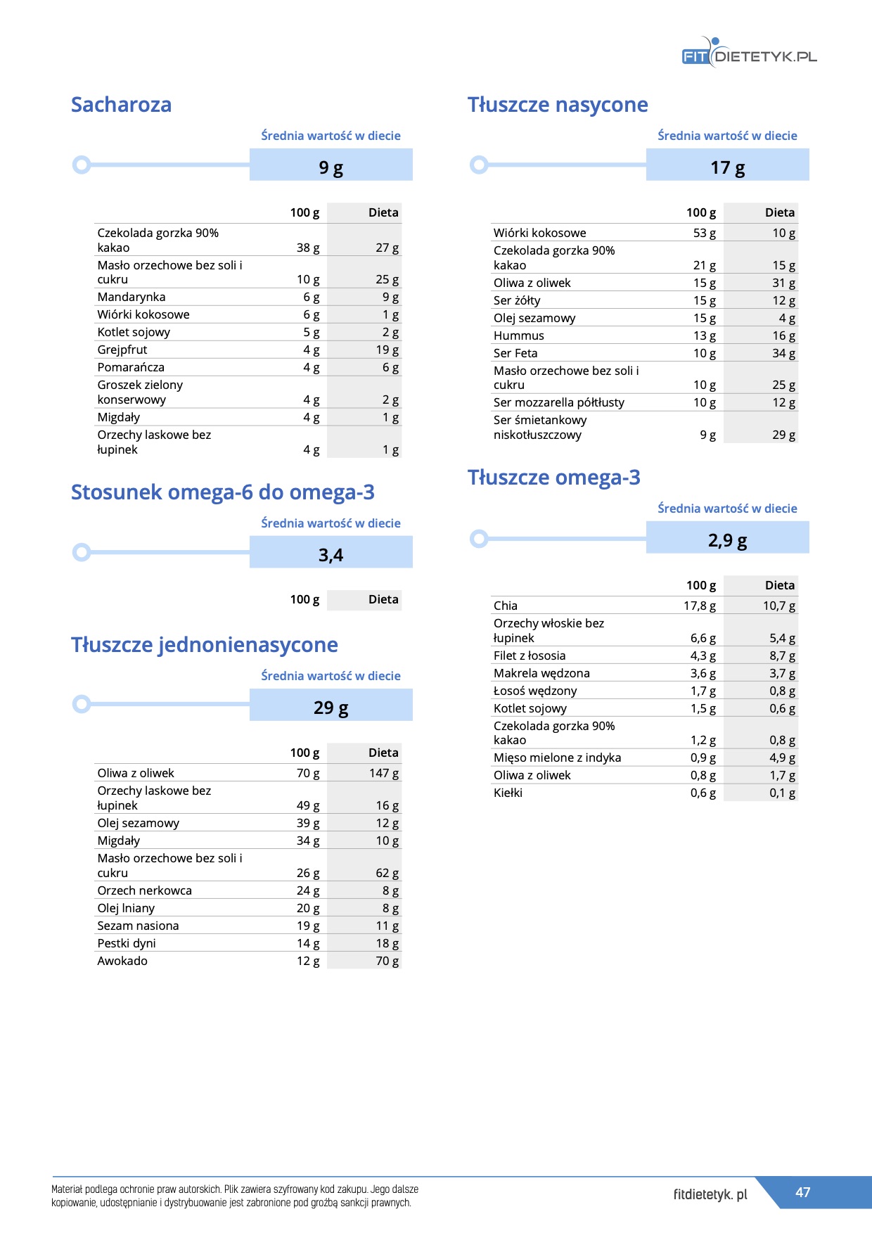 Dodatkowo do opracowanego planu dietetycznego otrzymasz atrakcyjnie przygotowane ciekawostki i wiadomości żywieniowe, które mam nadzieję pozwolą Ci zrozumieć wiele spraw związanych z nurtującym Cię problemem, a także przyczynią się do zwiększenia ogólnej wiedzy żywieniowej.