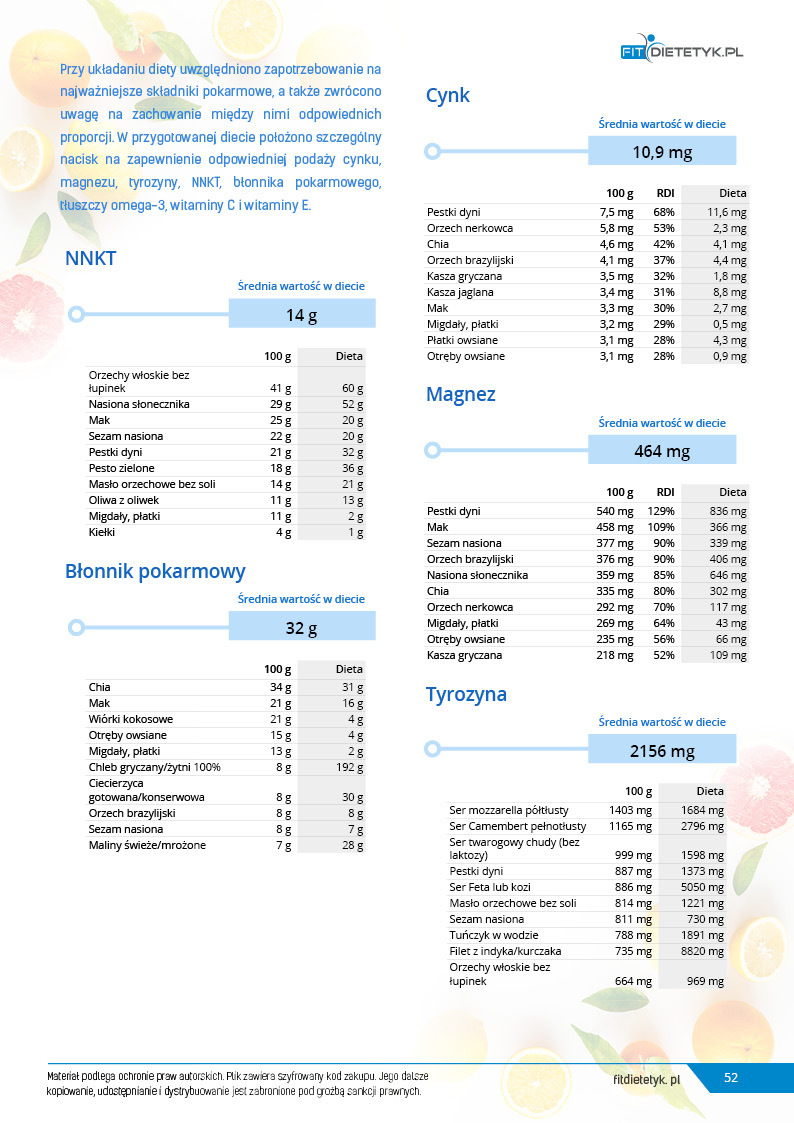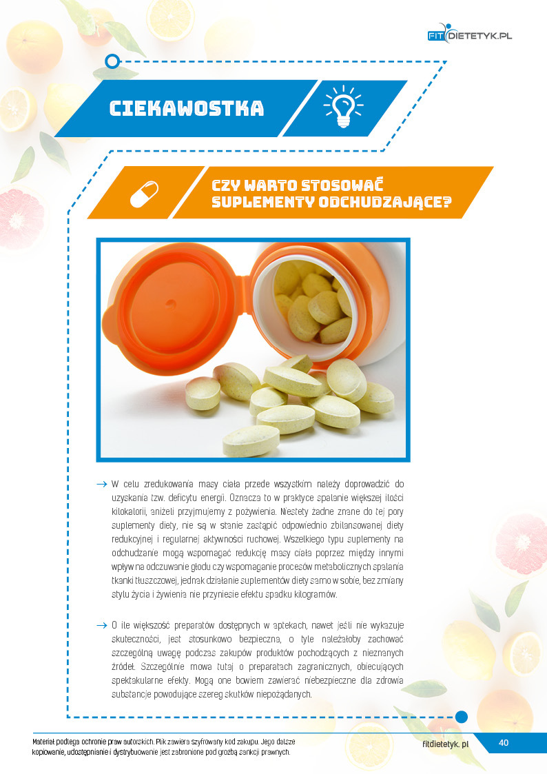 Dodatkowo do opracowanego planu dietetycznego otrzymasz atrakcyjnie przygotowane ciekawostki i wiadomości żywieniowe, które mam nadzieję pozwolą Ci zrozumieć wiele spraw związanych z nurtującym Cię problemem, a także przyczynią się do zwiększenia ogólnej wiedzy żywieniowej.