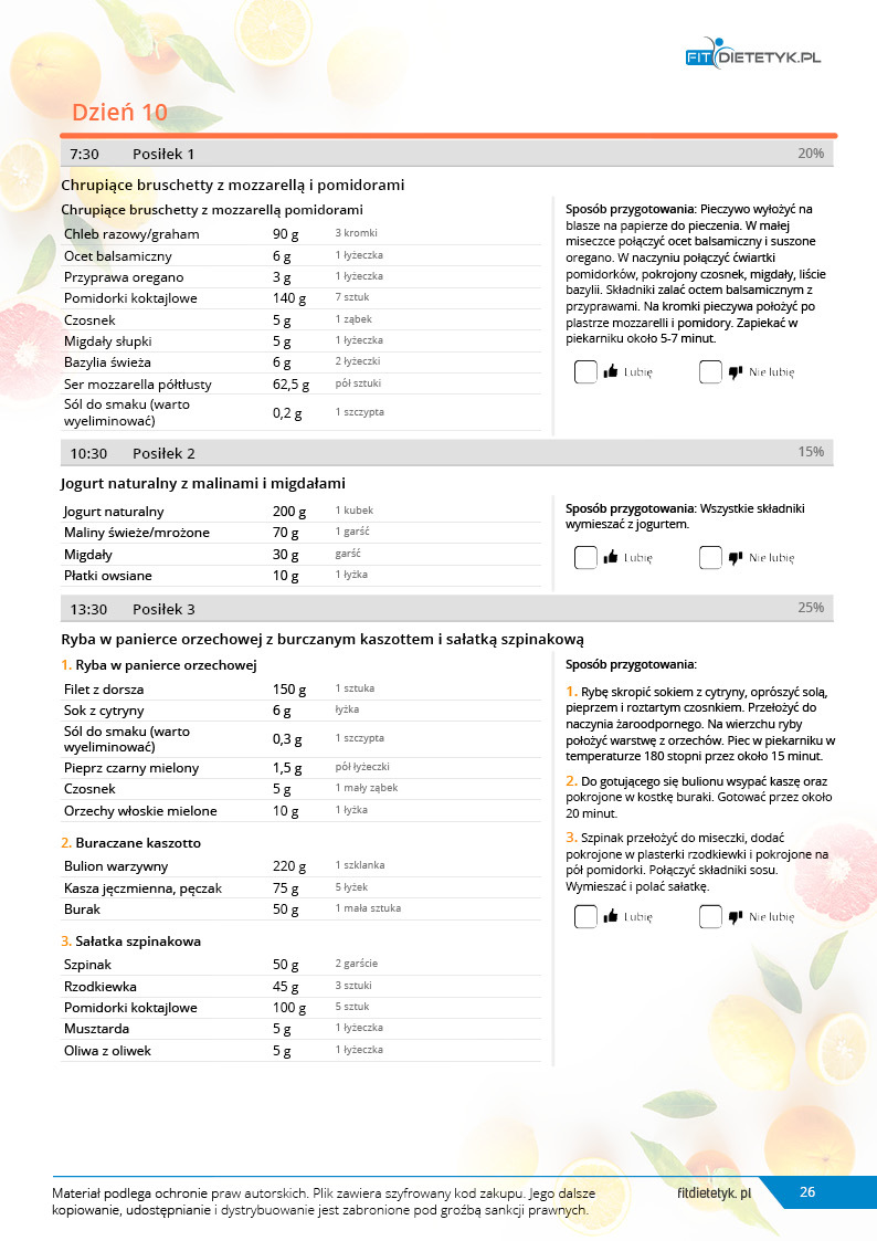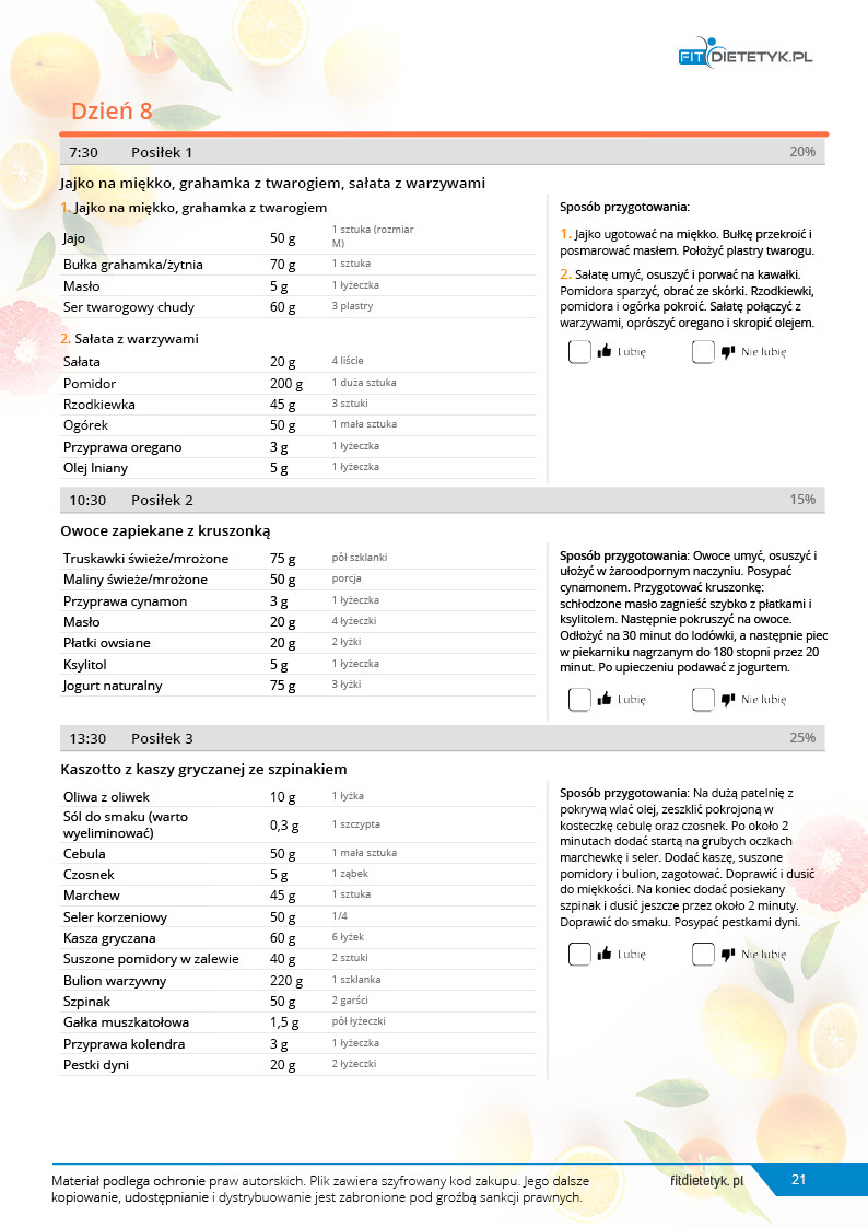 Obok szczegółowego planu dietetycznego otrzymasz również praktyczny poradnik korzystania z opracowanego planu dietetycznego.
