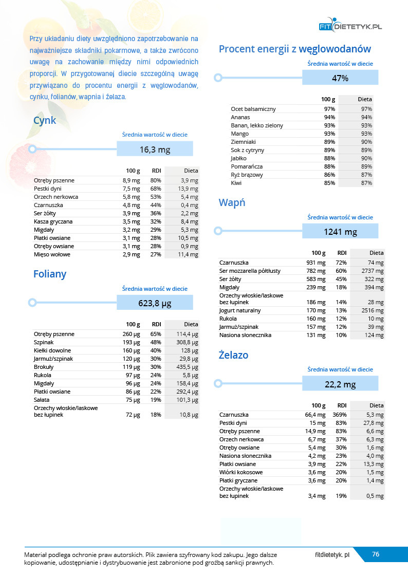 Dodatkowo do opracowanego planu dietetycznego otrzymasz atrakcyjnie przygotowane ciekawostki i wiadomości żywieniowe, które mam nadzieję pozwolą Ci zrozumieć wiele spraw związanych z nurtującym Cię problemem, a także przyczynią się do zwiększenia ogólnej wiedzy żywieniowej.