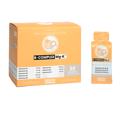 Unikalne połączenie kompleksu witamin B z magnezem i potasem w postaci żelu liposomalnego.