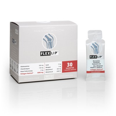 Wysoko przyswajalny kolagen rybi Naticol® wraz z glukozaminą, chondroityną, kwasem hialuronowym, cynkiem, manganem, witaminą C i D w postaci liposomalnej.
