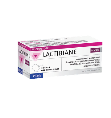 Dzięki wysokiej koncentracji szczepów probiotycznych, pomaga bardzo szybko łagodzić zaburzenia jelitowe i sprzyja utrzymaniu równowagi flory jelitowej. Stosowany w celu złagodzenia przewlekłych zaburzeń trawiennych, takich jak wzdęcia lub zaparcia, a nawet syndrom jelita drażliwego, co zostało udowodnione w badaniu klinicznym. Lactibiane Imedia może być również stosowany w zaburzeniach żołądkowo-jelitowych: dawka może być wtedy większa. Suplement diety opracowany na podstawie badań naukowych.Rekomendowany do suplementacji w: