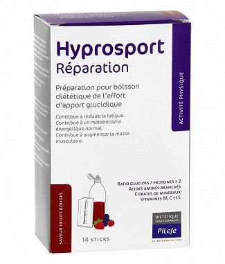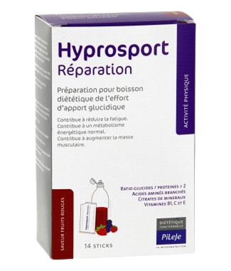 Hyprosport Naprawa to preparat do sporządzenia dietetycznego napoju energetycznego zawierający węglowodany. Witamina C przyczynia się do zmniejszenia zmęczenia i do prawidłowego metabolizmu energetycznego. Białka mają wpływ na zwiększenia masy mięśniowej. Rekomendowany do suplementacji po każdym treningu, szczególnie po treningu intensywnym lub długotrwałym, po wznowieniu treningów po długiej przerwie spowodowanych urazem lub kontuzją. Przeciwwskazania: produkt przeznaczony jedynie dla dorosłych. Nie zawiera glutenu.Rekomendowany do suplementacji w: